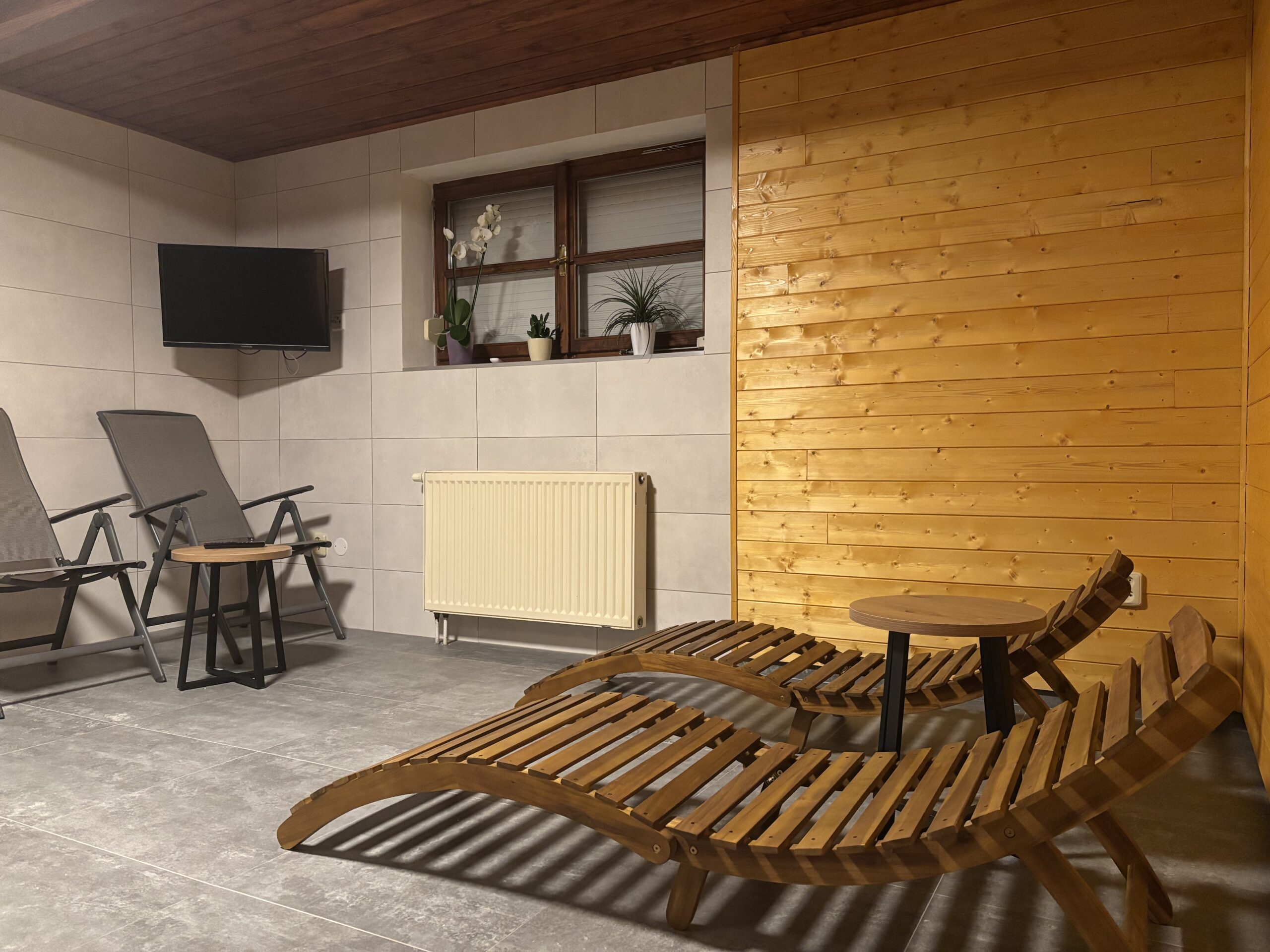 wellness Pro ubytované hosty je k dispozici privátní kombinovaná sauna (finská + infra) až pro 4 osoby. Využití je možné za poplatek po předchozí domluvě s majitelem. Po saunování můžete relaxovat v odpočinkové místnosti. Sauna – 1 Sauna – 2 Sauna – 3 Sauna – 4 Sauna – 5 Sauna – 6